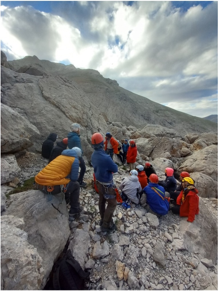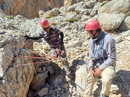 16.40’ta pratik eğitim ve ip inişi sona erdi, ardından sikke atma teorik eğitimi verildi. Sonrasında pratik yapmaya başladık. Sikke atmayı denerken grup arkadaşım Burak, baba ve sikkeyle birlikte bir istasyon kurdu, bu beni çok şaşırttı. Çünkü gün içerisinde neredeyse bütün kayalarda baba buluyordu ve amacımız yalnızca sikke atmaktı. Bu durumda sikkeyle birlikte oturabileceğimiz bir istasyon kurması beni gerçekten şaşırttı.