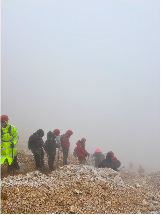 Bazen tırmanırken nefes nefese kalıyordum (nefes darlığı çekiyordum). 09.20’de 10 dakikalık bir mola verildi. Süre hızlı geçmişti. Buradan sonra artık MTA Tepesi’ne tırmanmaya başlayacaktık. İrtifa arttıkça hava esmeye başlamıştı. Tırmanmak bana kolay geliyordu; sırtınızda yük olunca düşmek veya ayağınızın kayması daha zor oluyor. 10.48’de 5 dakikalık mola verildi. Zirve için çantalarımızı bıraktık ve bize sıkı giyinmemiz söylendi. Saat 11.08’de MTA Zirvesi’ne ulaştık.